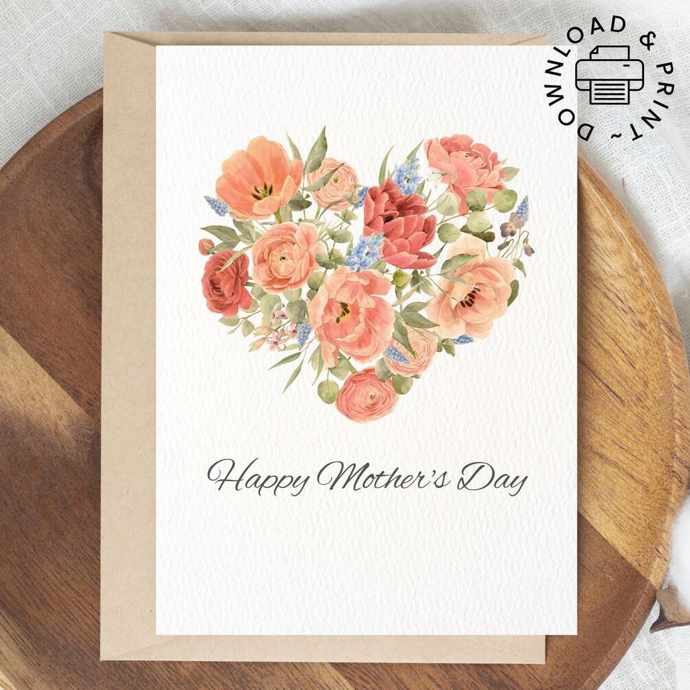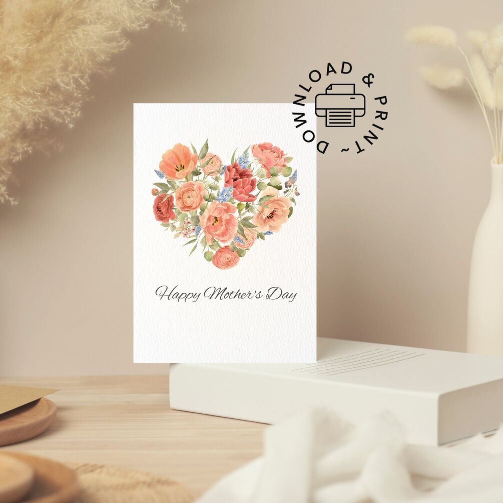 MOTHER'S DAY CARD, Digital Download, Floral Heart Card, Celebration Card, Mothers Day Card, Gift For Mom, Mothers Day Gift, Celebrate Mom
